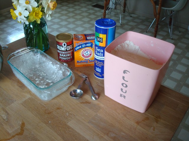 My aunt’s recipe calls for shortening but I only had about a tablespoon left thanks to a certain houseguest who has a habit of leaving small amounts of things behind after cooking and baking with them, but never fear– I always seem to have plenty of butter on hand so substituted that instead.  And it came out just fine.