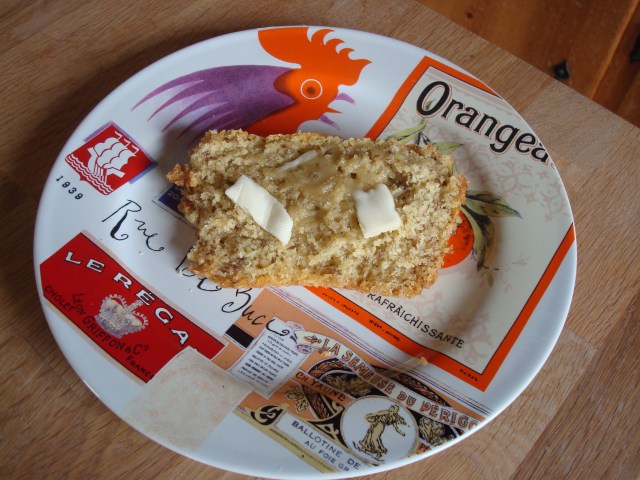 In honor of Mother’s Day I thought I would bake a recipe of a favorite mother in my life– in this case, my Aunt Sarah’s banana bread.  In hindsight perhaps I should have made one of my own mother’s recipes but I had two ripe bananas in my freezer just begging to be baked into bread so that was the deciding factor.  I know my mom will understand.