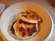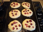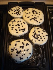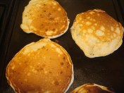 After pouring the batter onto the hot griddle you can add blueberries if you like: