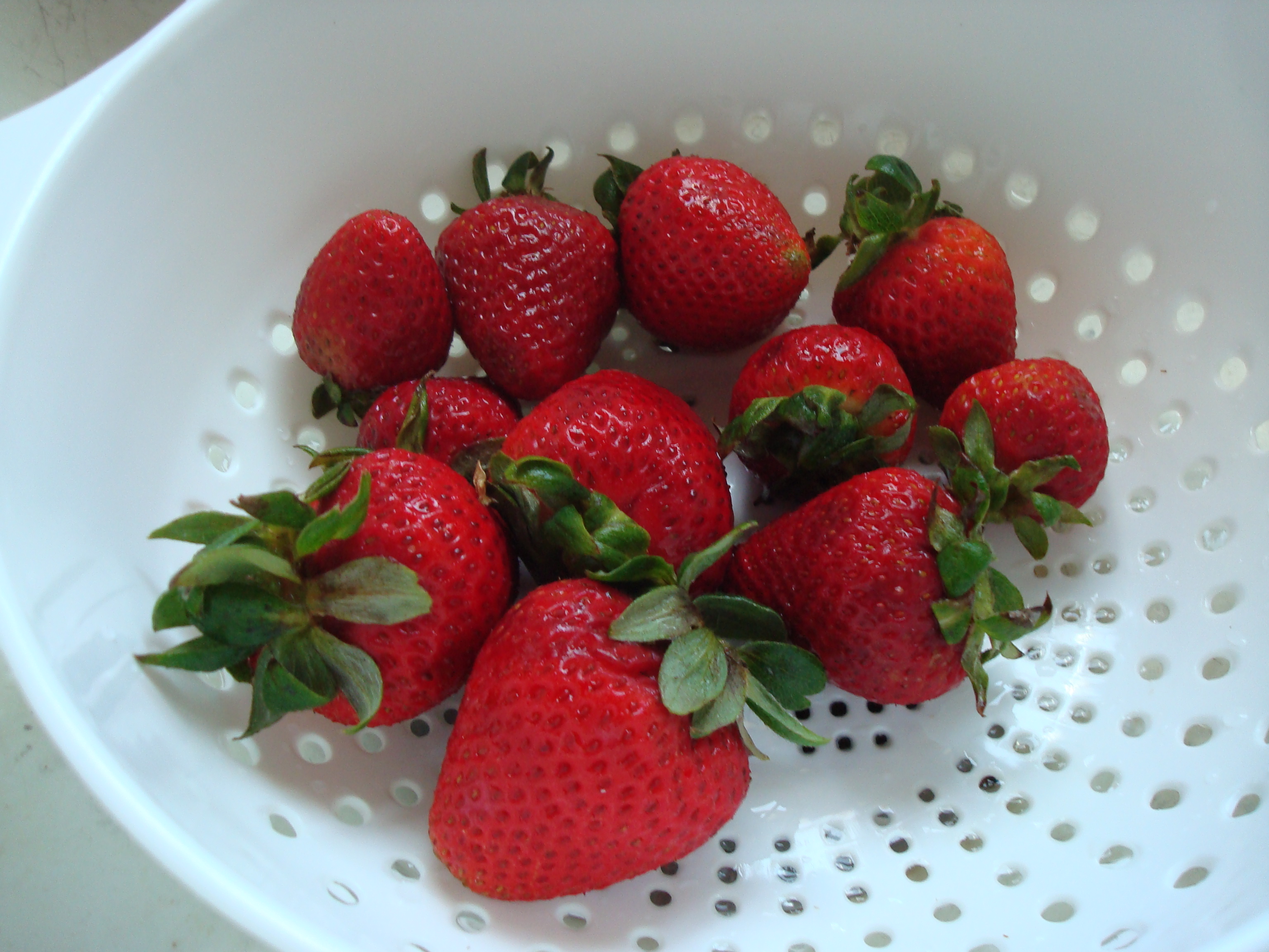 - ½ cup strawberries, rinsed, stem caps removed and sliced