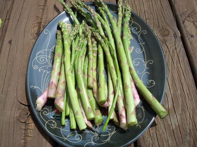 Last spring a friend and I got dinner at a fancy pants restaurant in a posh neighborhood in New York and ordered an appetizer that consisted of asparagus, eggs, and parmesan– very simple, and very delicious. So this spring when a coworker brought me asparagus from her garden I decided to recreate it.