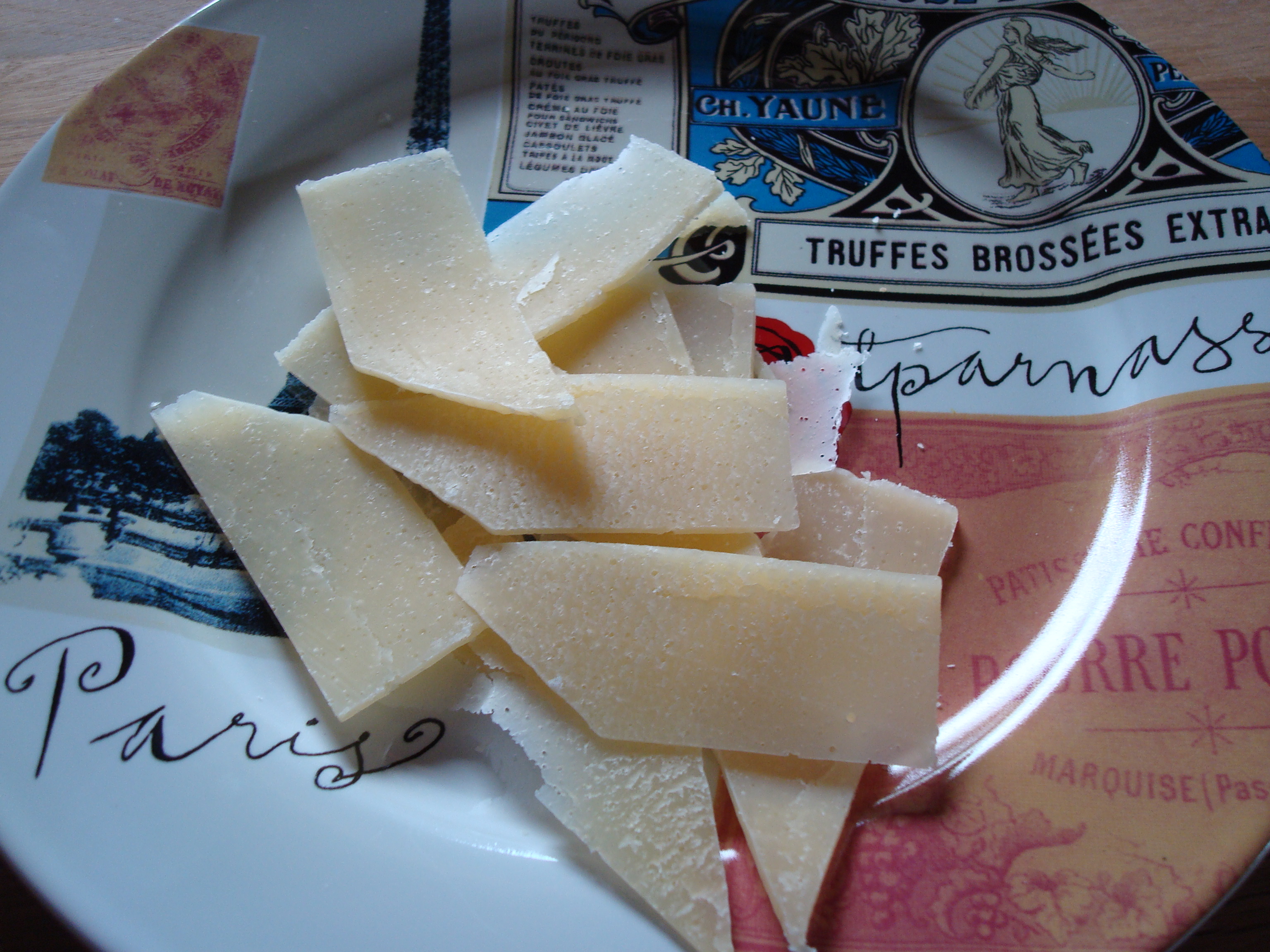 While the asparagus was roasting and the eggs were poaching I shaved up a little parmesan with my vegetable peeler. Parmesan tastes better shaved than it does grated. Totally true.