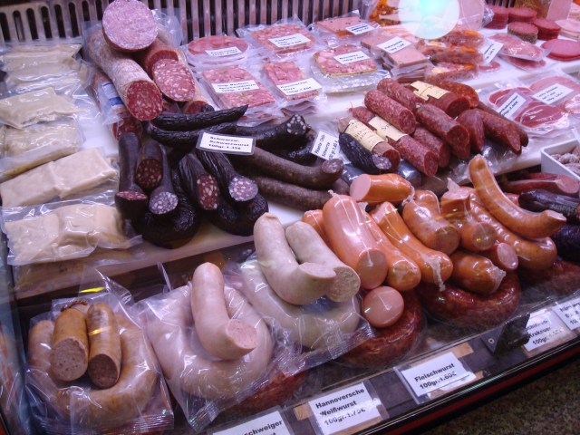 Germans love sausage.  Below is but a fraction of what this particular vendor had to offer: