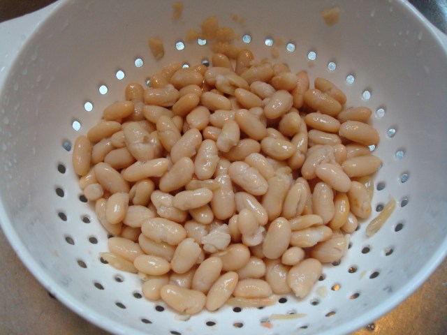 • 1 (15-ounce) can white (cannellini) beans, rinsed and drained