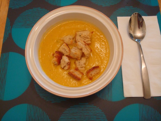 Butternut Squash Soup with Sage and Parmesan Croutons (from recipe from Real Simple magazine)