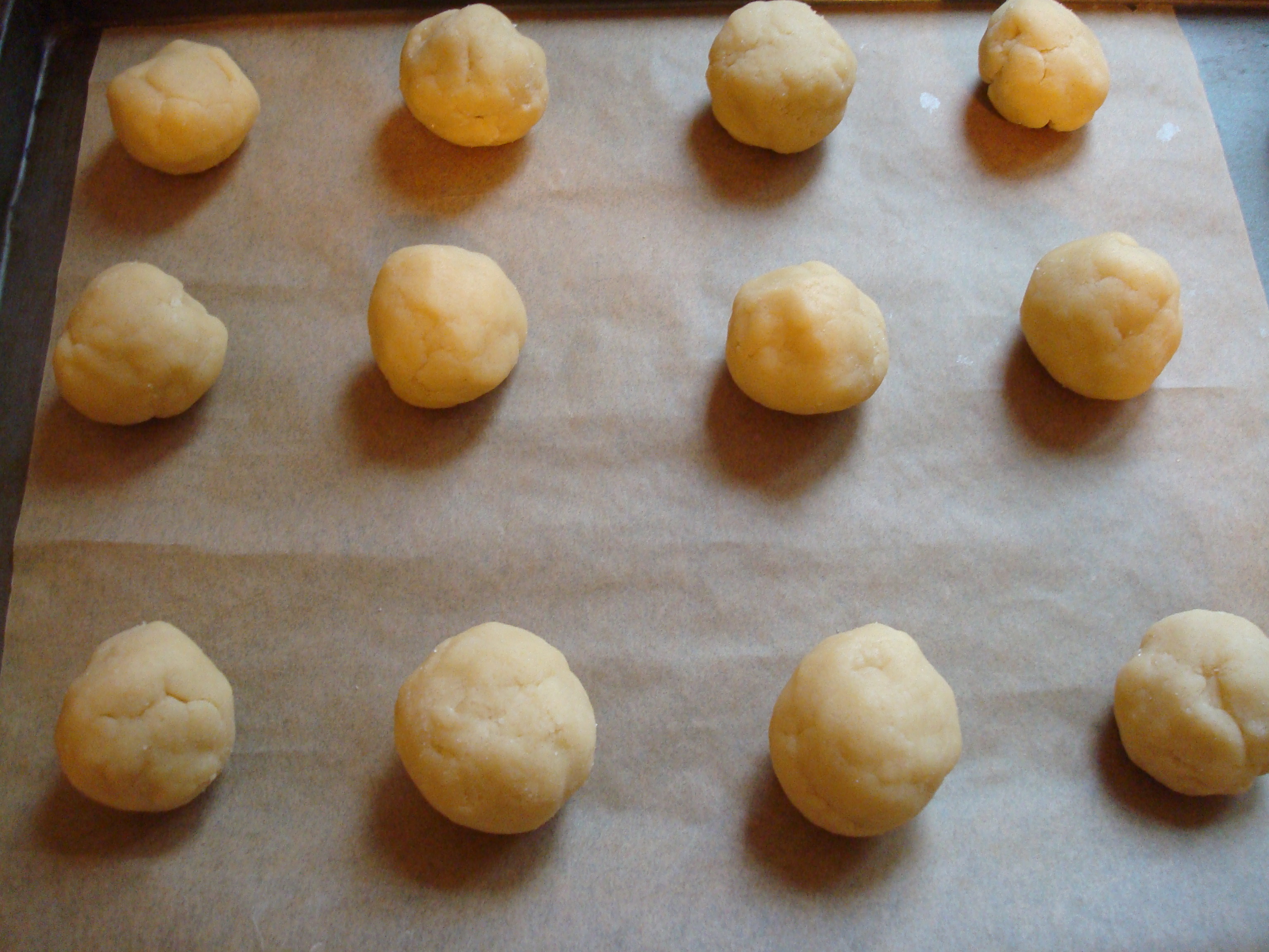 Roll dough into 1-inch balls. Arrange on parchment-lined baking sheets, spacing each 1 inch apart.