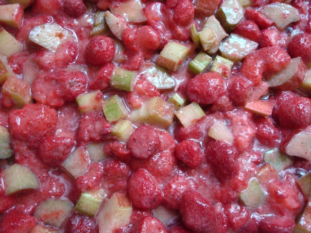 You might be thinking to yourself, another rhubarb recipe?  I hope you aren’t, but if you are I get it.  I have rhubarb coming out the wazoo right now so have been experimenting a lot with it lately.  I am also simultaneously trying to clear out my freezer of last year’s fruit to make room for this year’s and last June I did some serious strawberry-picking and thus still have it in abundance in my freezer.  So when I found another awesome-sounding recipe for a strawberry-rhubarb combination I knew it was meant to be.
