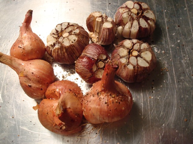 I made a beautiful soup by roasting the garlic and shallots and then sticking them in a pot with some potatoes, wine, broth, and a little fresh rosemary. My apartment smelled amazing and the resulting soup was rich, creamy, and filling in a nice, not overly-stuffed way. With a little fancy “ancient grain” bread I picked up at Whole Foods it fed me well all weekend. And now hopefully it will feed you well some weekend this season!
