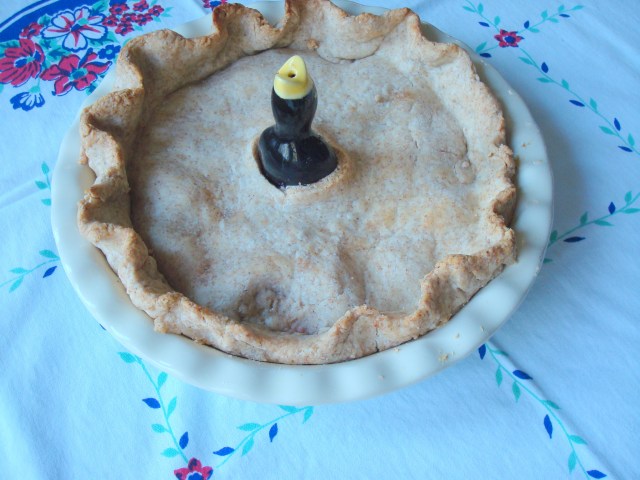 There were two things I had always wanted to try with pie but hadn’t up until last week and that was to make crust the old-fashioned way, with lard, and secondly to use a pie bird as the venting method.