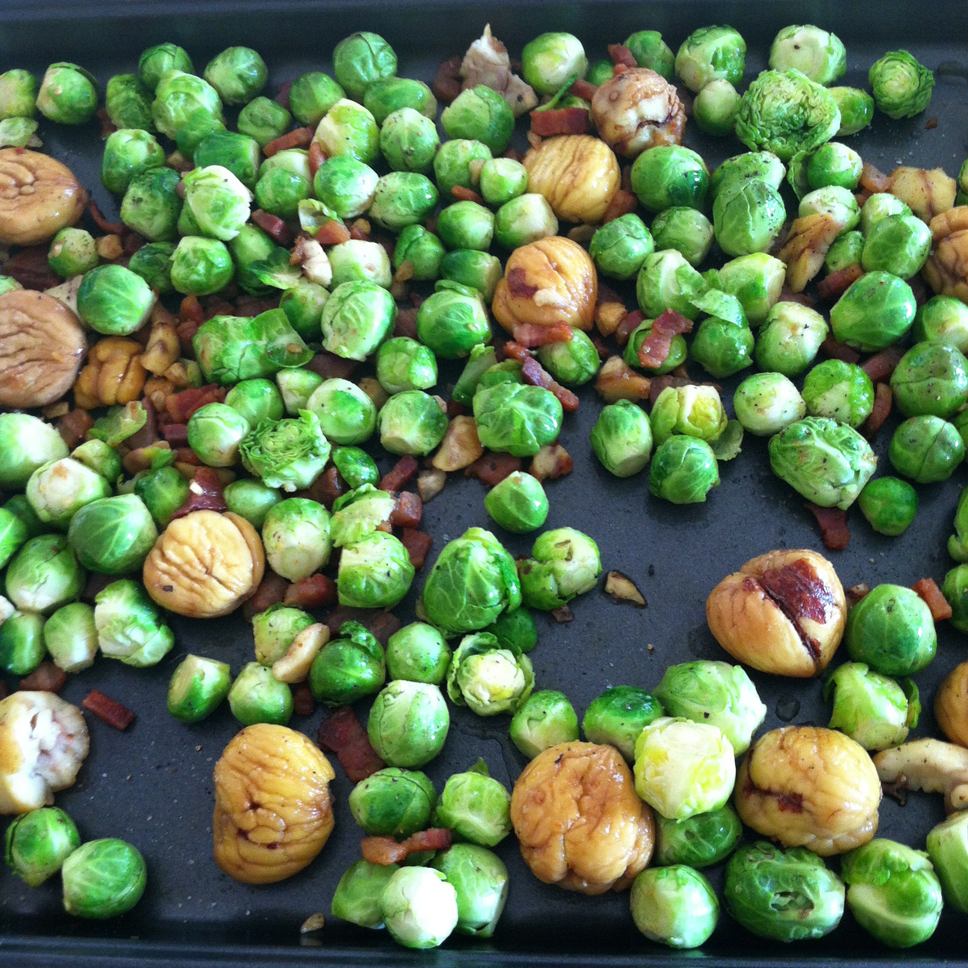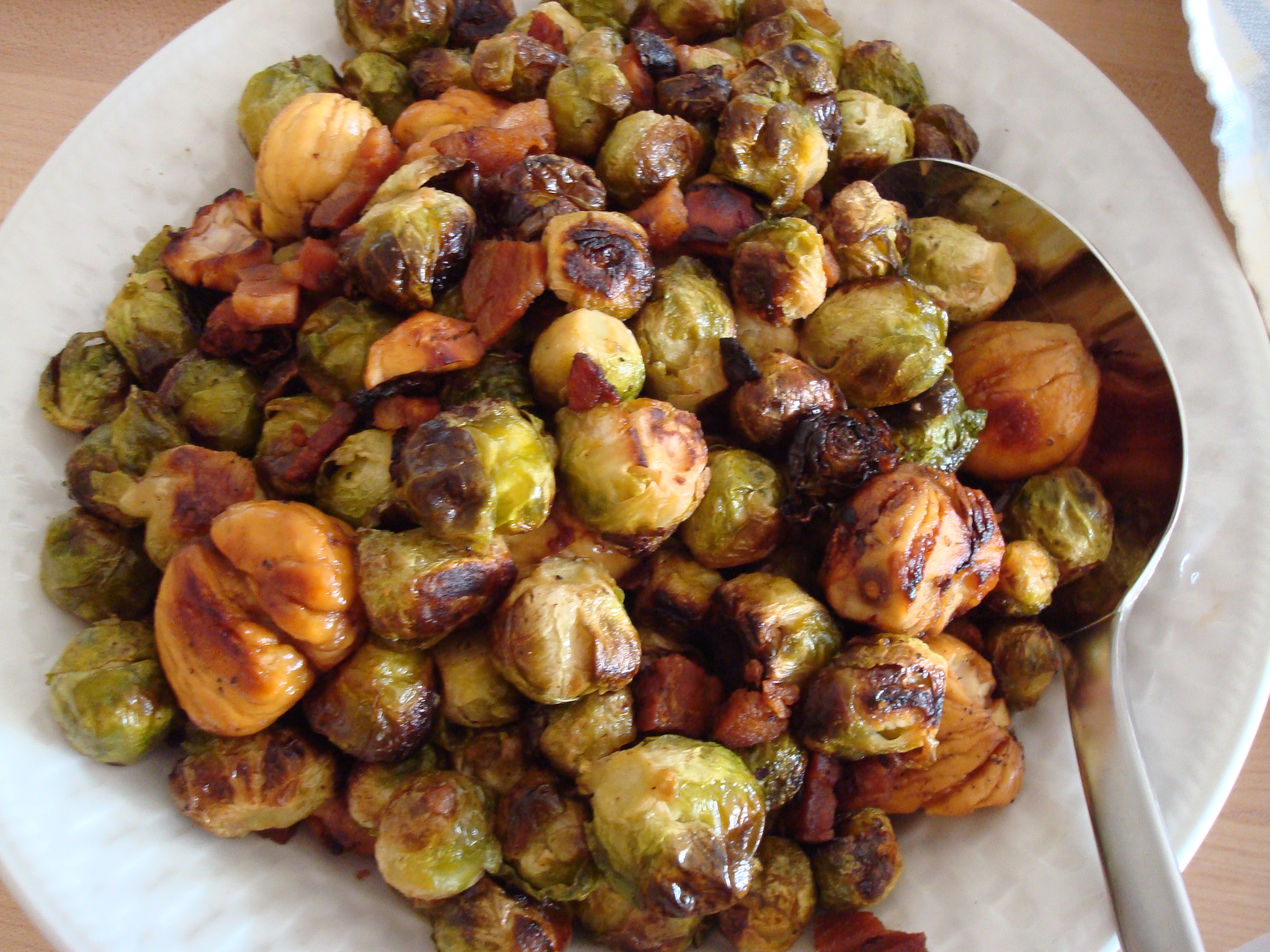 roasted maple Brussels sprouts with pancetta and chestnuts
