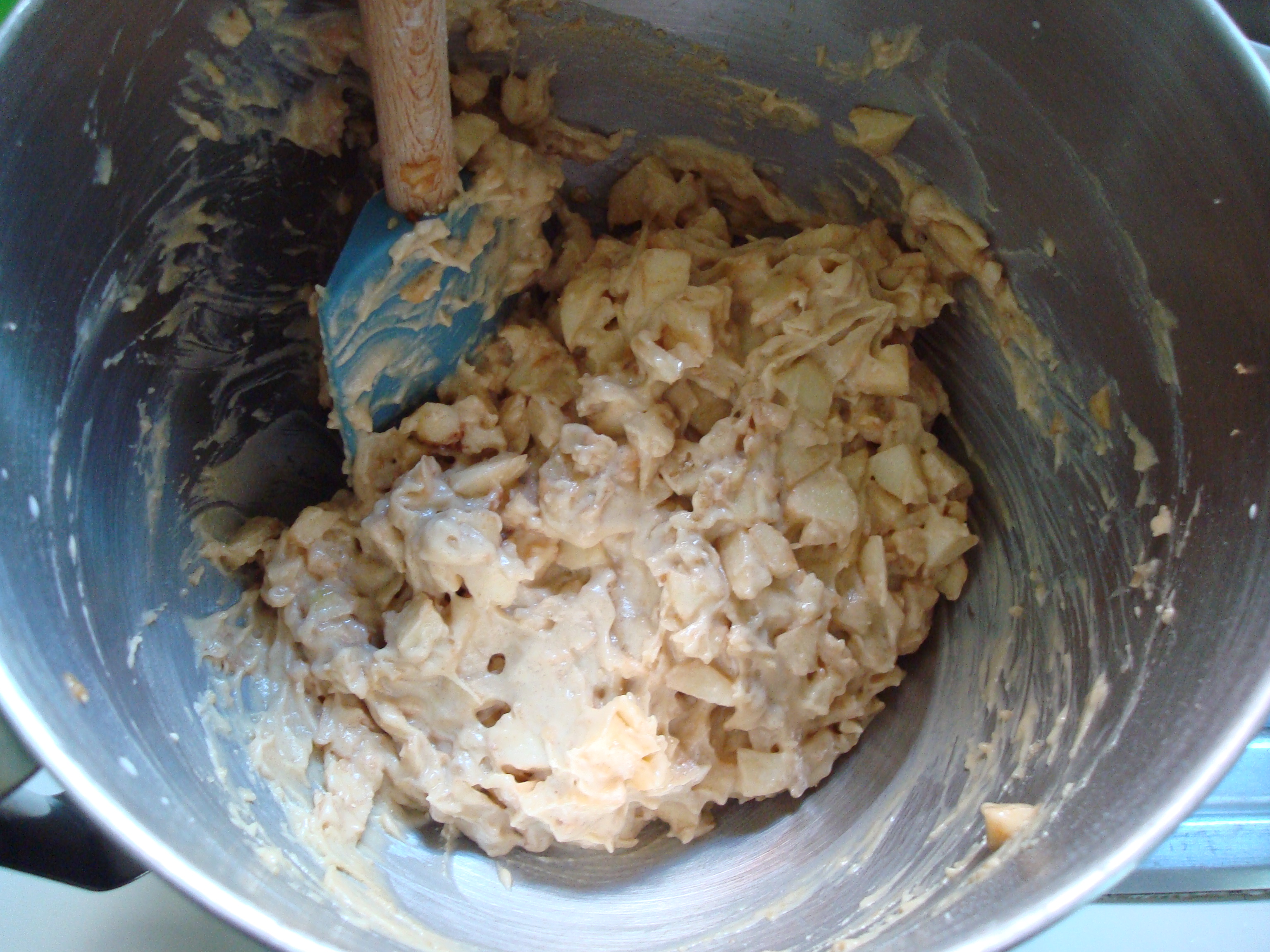 It’s a very simple recipe (which I love) and called for both chopped up apple to be mixed in with the batter and sliced apples to be placed on top of the cake decoratively. The other ingredients were: half a stick of butter, half & half, flour, white and brown sugar, cinnamon, an egg, and baking powder. All things I had readily on hand.