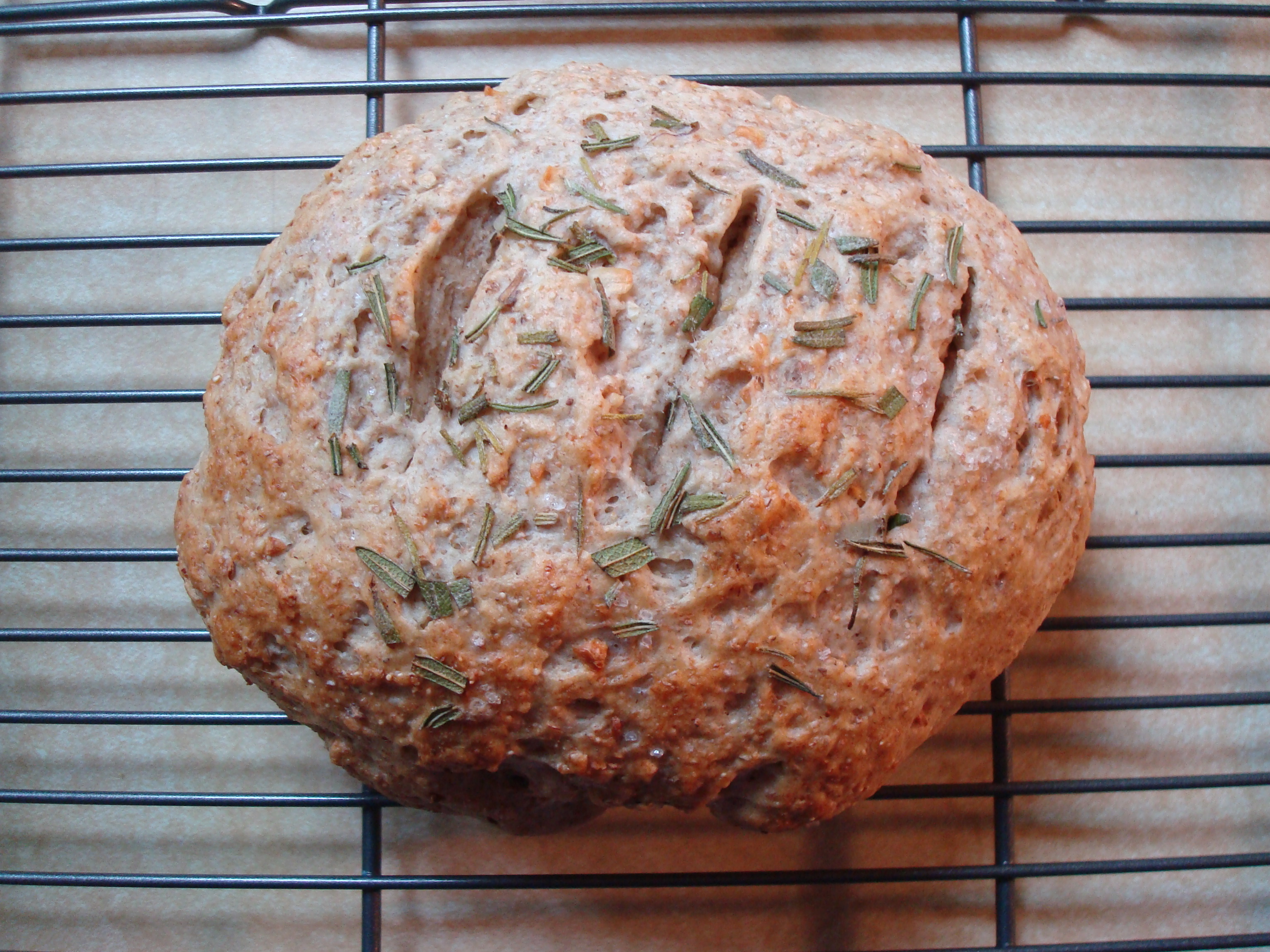 My first night in town I walked over and picked up the essentials: cheese, sausage, bottle of wine, fruit, and a loaf of bread.  And not just any bread but a fancy loaf of rosemary bread.  Best decision I made.  I ate it sliced with butter on it (delicious) and made grilled cheese with it (even better).  I had forgotten about that wonderful bread until I saw this recipe in a magazine I picked up a few months back.