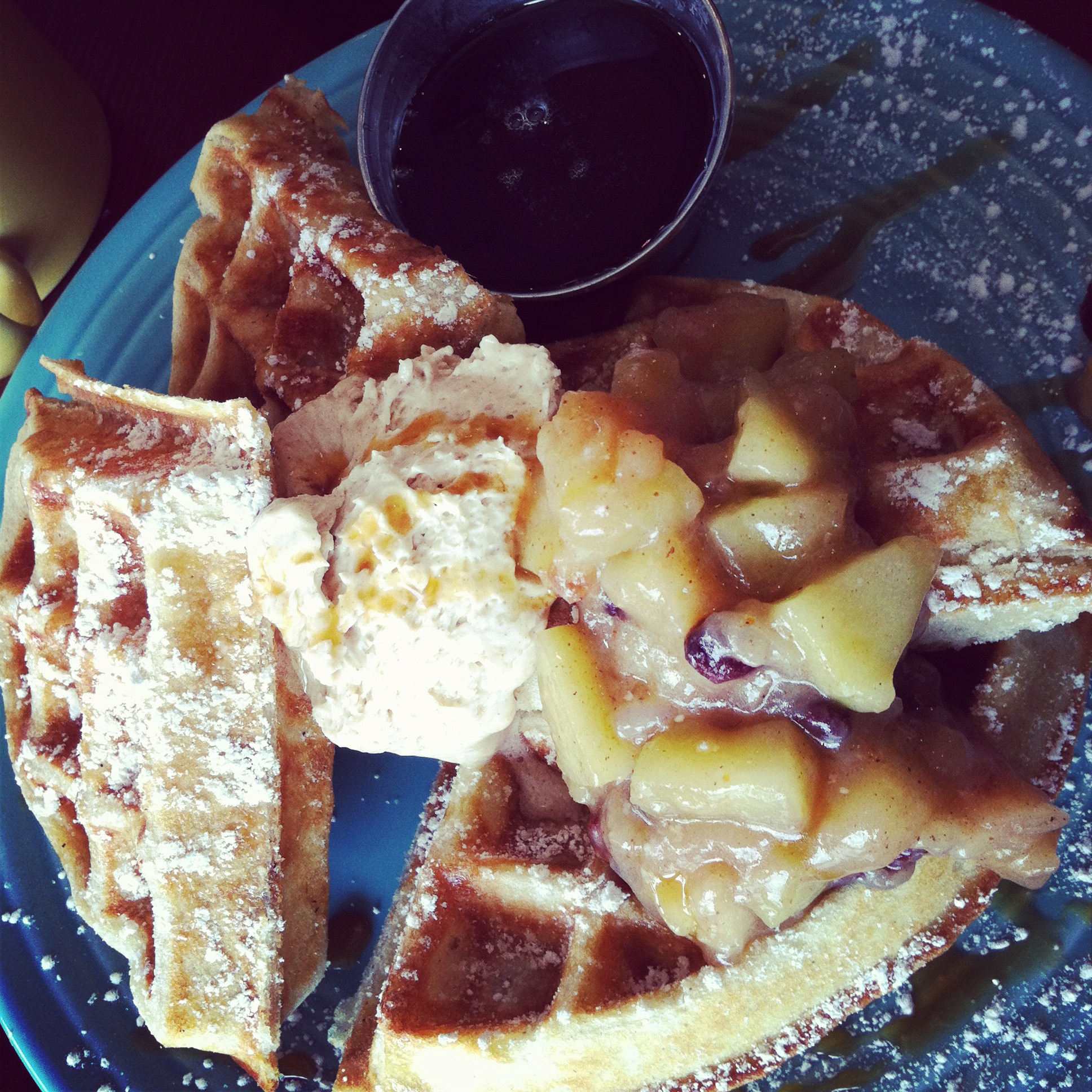 Away from the square another notable brunch place that is a little off the beaten path, though well worth the trip, is Crema Cafe on the other side of Lake Monona. They’re always cooking up interesting seasonal specials like the cinnamon apple waffles I consumed there last fall. So warm and cozy while it was so the opposite outside.