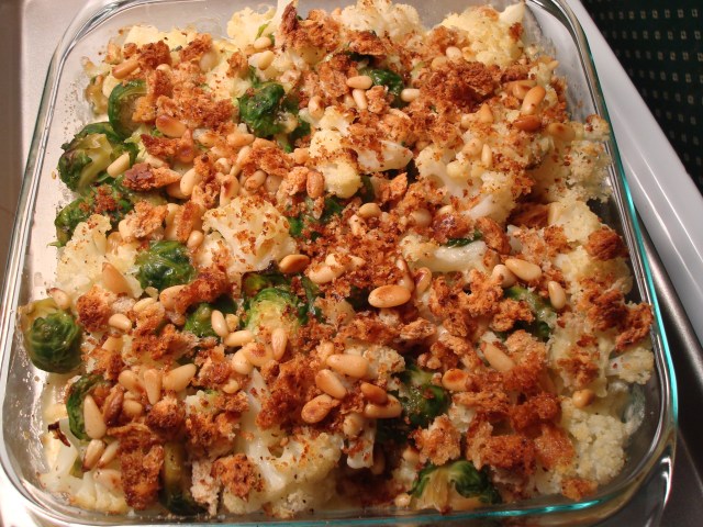 Brussels sprouts have become a staple with my family on Thanksgiving.  I’ve made them a variety of ways and one of my favorites is Cauliflower and Brussels Sprouts Gratin.  I first had a version of this at a restaurant in NYC and couldn’t stop thinking about them so sought out a recipe so that I could recreate them at home.