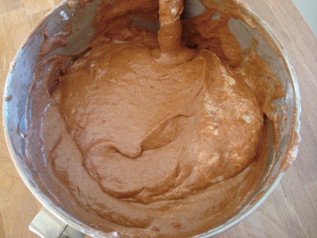Sift the flours, cocoa powder, baking powder, baking soda, salt, and nutmeg together into a large bowl.  Whisk in the malted milk powder.  Set aside
