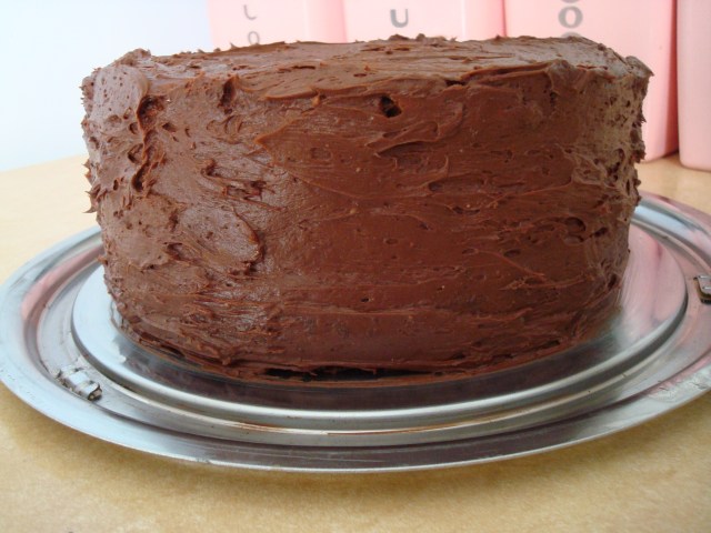 Then you whip up some cocoa mascarpone frosting and frost the heck out of those layers.  I mean, who says this cake is not a winner?  In my book it is.