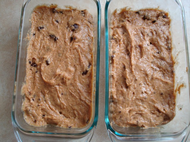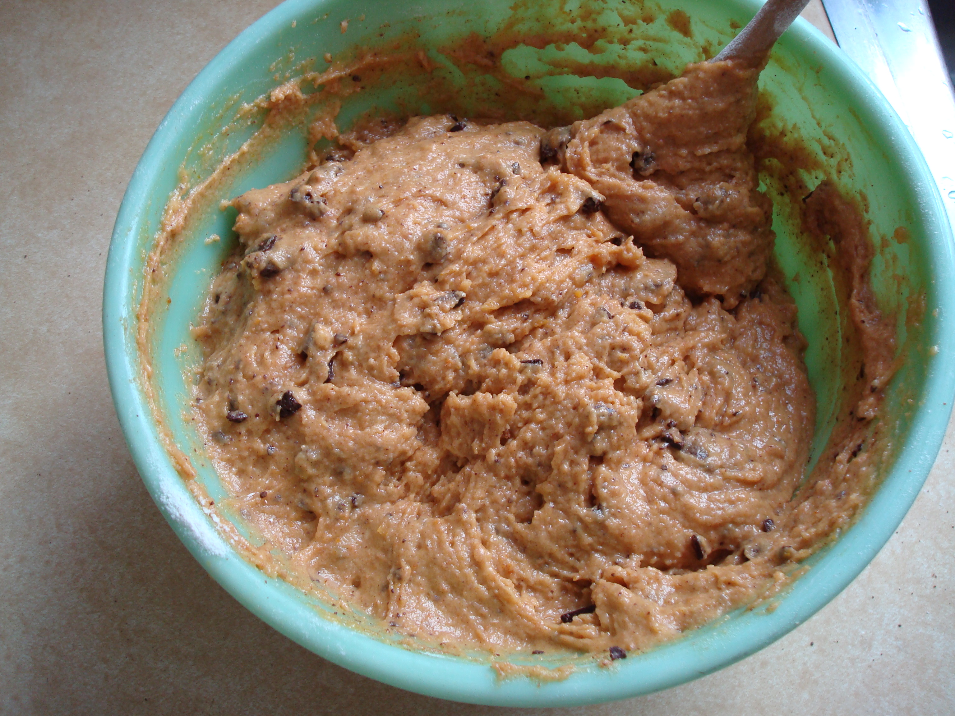 Then you pour the pumpkin/cream mixture over the flour/butter mixture and you work the dough with your hands until it all holds together.