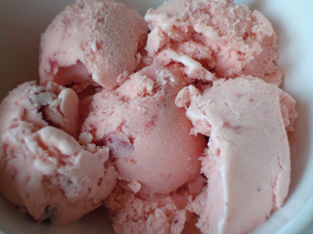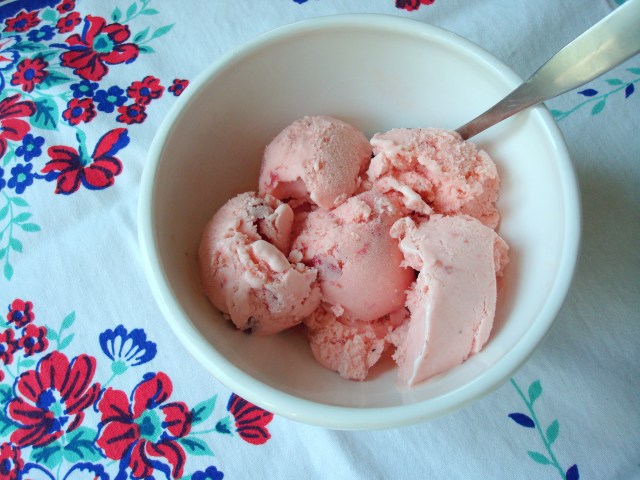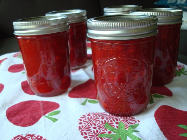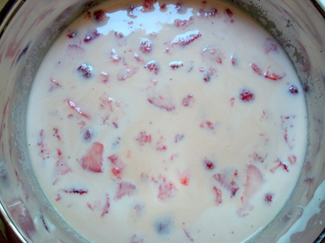 I know it’s not quite strawberry season yet, but after the long winter we’ve been experiencing I was in need of a little summer. Fortunately for me, I still had two bags full of strawberries that I picked last summer in my freezer. Once I opened up the bag of strawberries– I kid you not, it smelled like summer. There’s just something about freshly picked berries that are so much more fragrant (even after 8 months in the freezer, apparently) than the fresh strawberries at the supermarket this time of year. Heavenly.