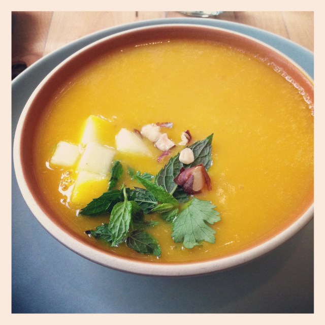 Upon arriving in my destination of Petoskey I grabbed lunch at American Spoon Cafe which I had somehow missed on my first visit to the area. The atmosphere is cozy and classic at the same time and the food was awesome. I had butternut squash soup (if you haven’t noticed, I’m really into squash soup) and a root vegetable salad.