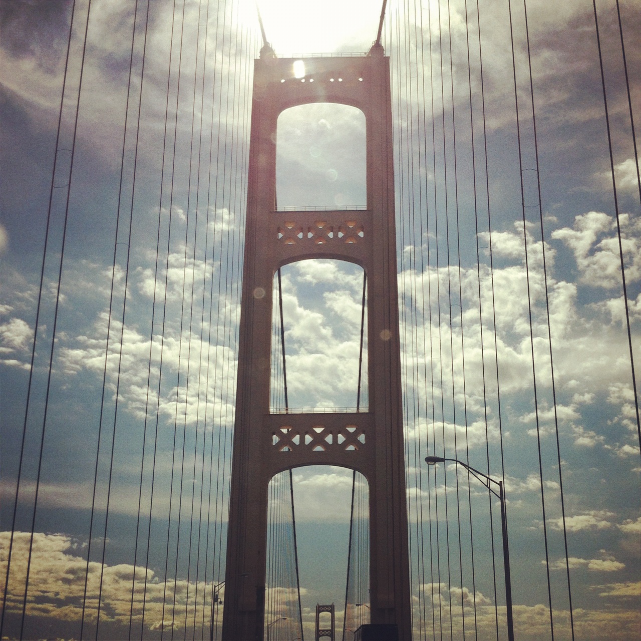 My second trip to the area was just last weekend for the wedding of my oldest friend. (Is that the way to phrase that? It makes it sound like she’s 102 but really we’re the same age and have been friends since we were three and used to carpool to Miss Janie’s pre-school together. Those were the days.) For this trip I opted to go the northern route and drove from Wisconsin through the upper peninsula of Michigan. Hadn’t passed over the Mackinac Bridge in about ten years. It looks the same of course, and still makes me nervous to drive in the center lane which is all grates open to the lake below. No thanks, I’ll stick to the outer paved lane with the trucks and old folks.